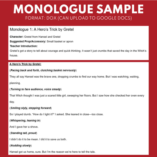 10 FREE Short Fairy Tale Monologue Scripts for Grades 1 to 3 | No Prep | Print & Go!