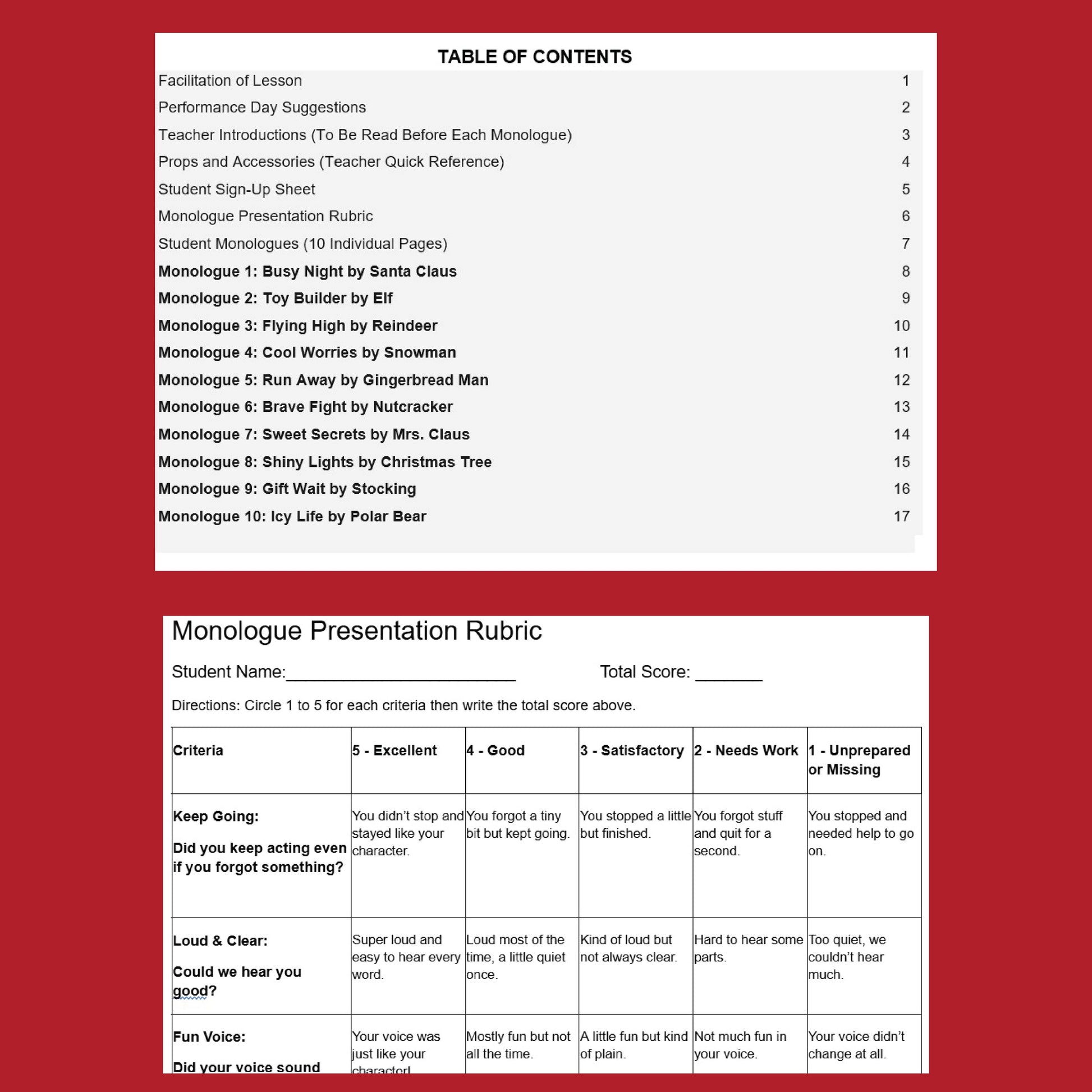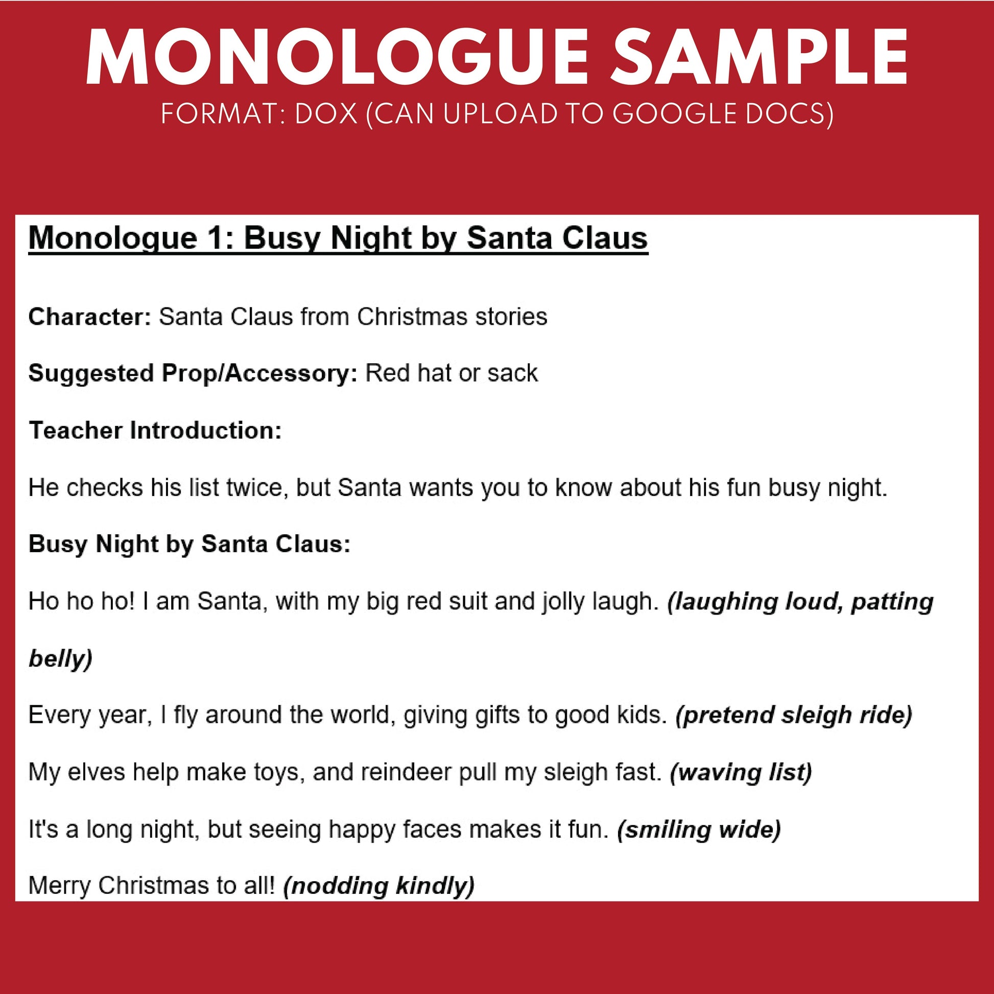 10 Christmas Monologues | 10 Short Scripts For Grades 1 to 3 | No Prep Activity PDF