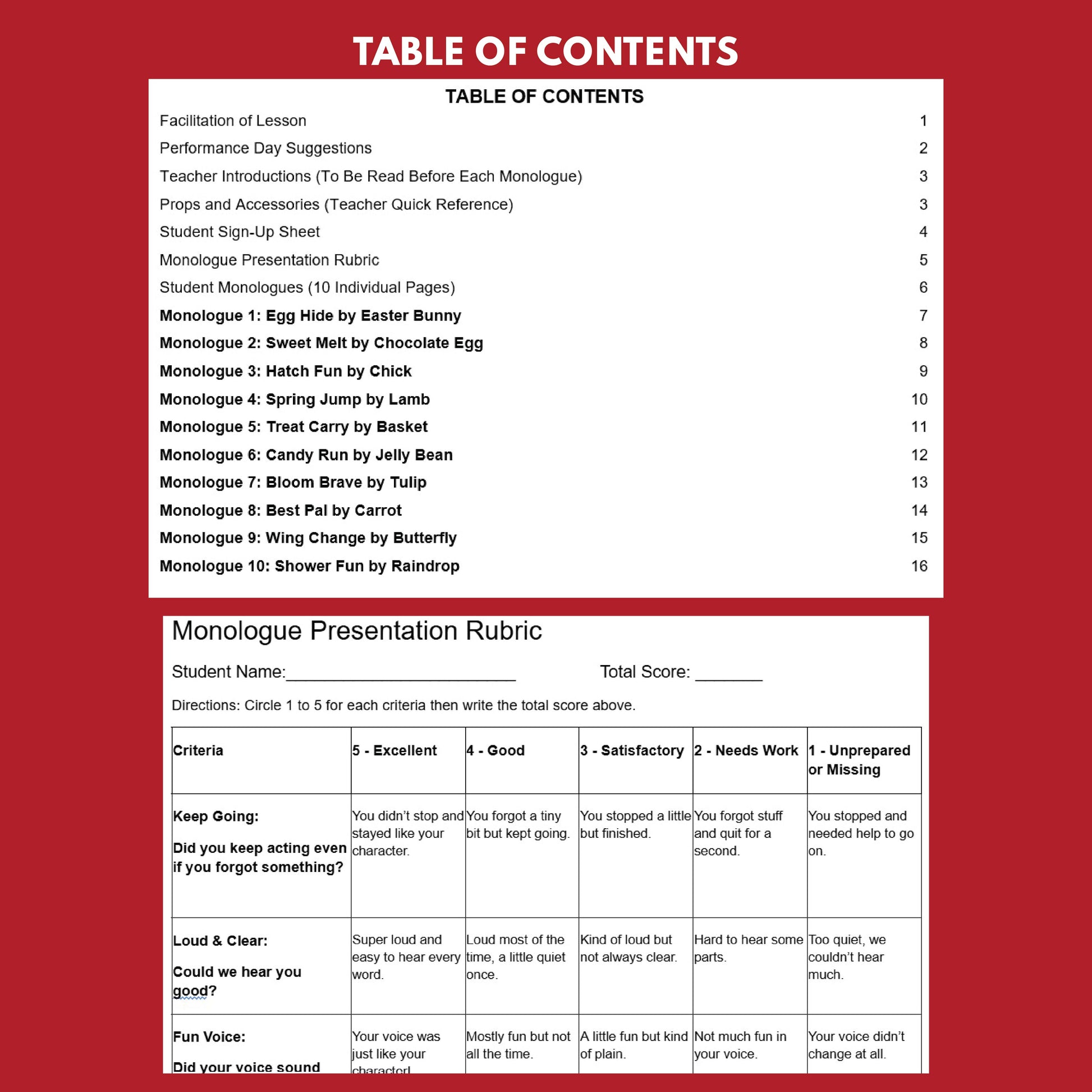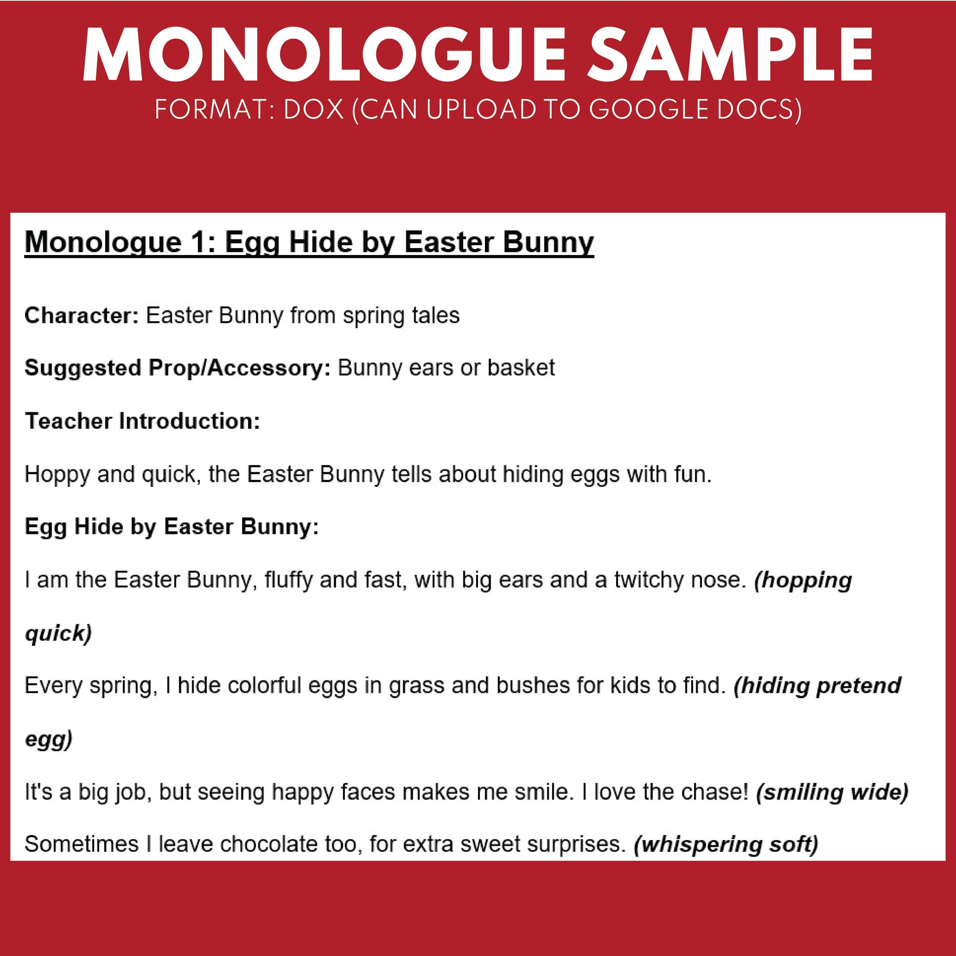 10 Easter Monologues | 10 Short Scripts For Grades 1 to 3 | No Prep Activity PDF