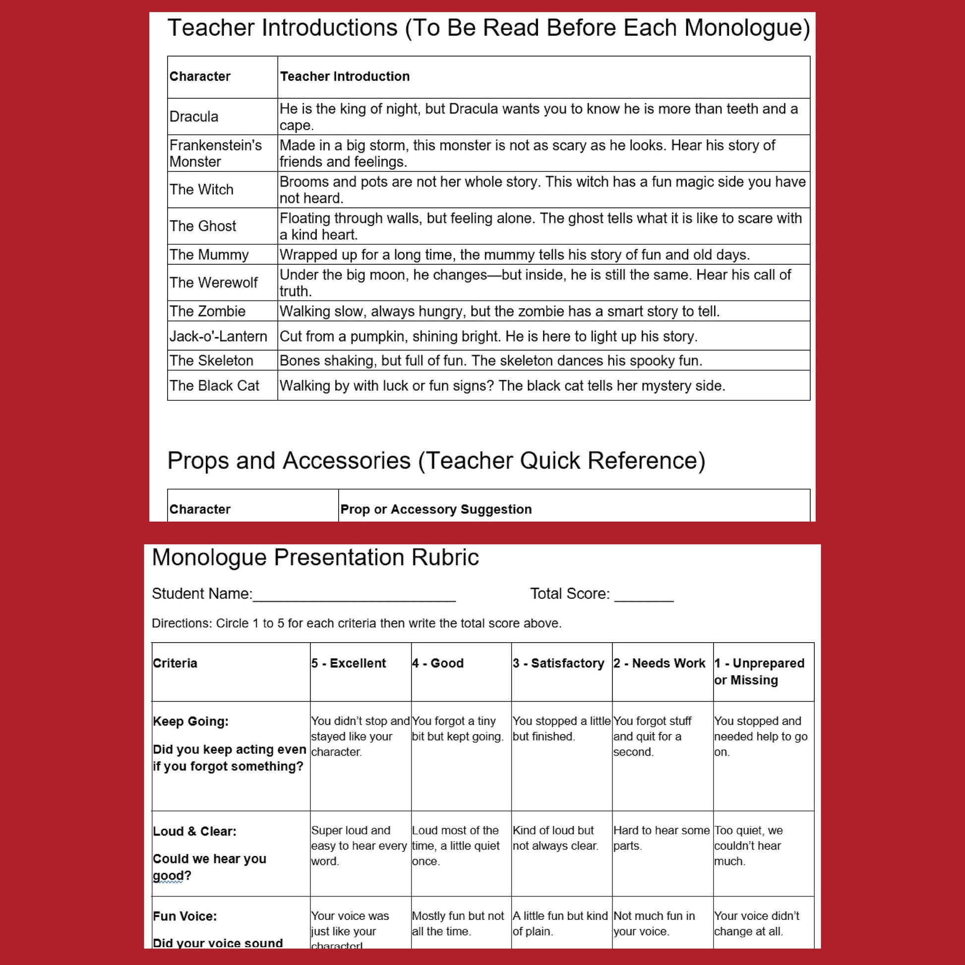 Teachers can use this packet for a fun Halloween activity, drama units, literature connections, student showcases, or end-of-year performances. It’s flexible for whole-class or small group use and easy to adapt for virtual or in-person settings. Just print, assign, and let your students shine.