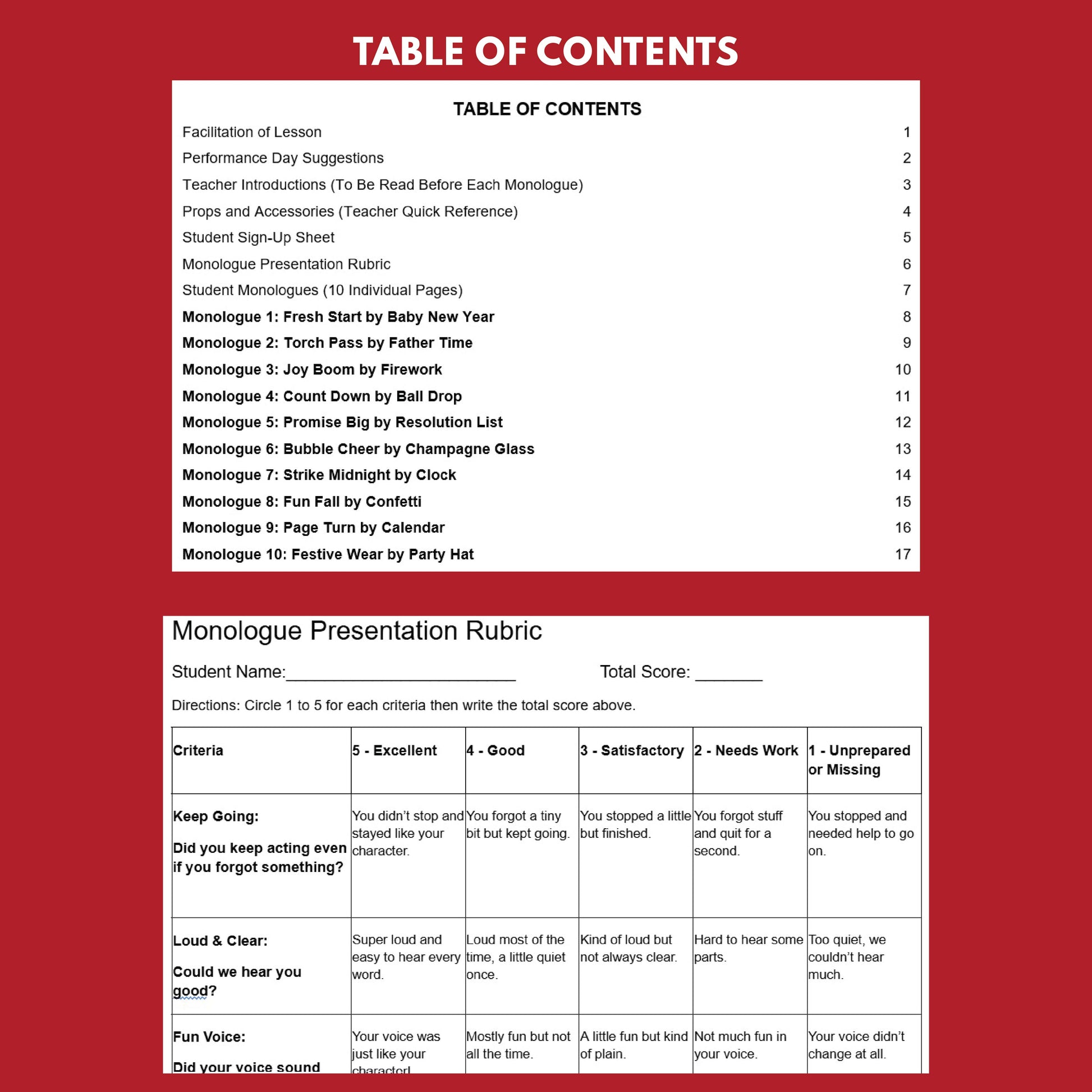 This monologue-based drama packet for early elementary classrooms is engaging, student-friendly and introduces ten reimagined characters from classic New Year’s Day items.