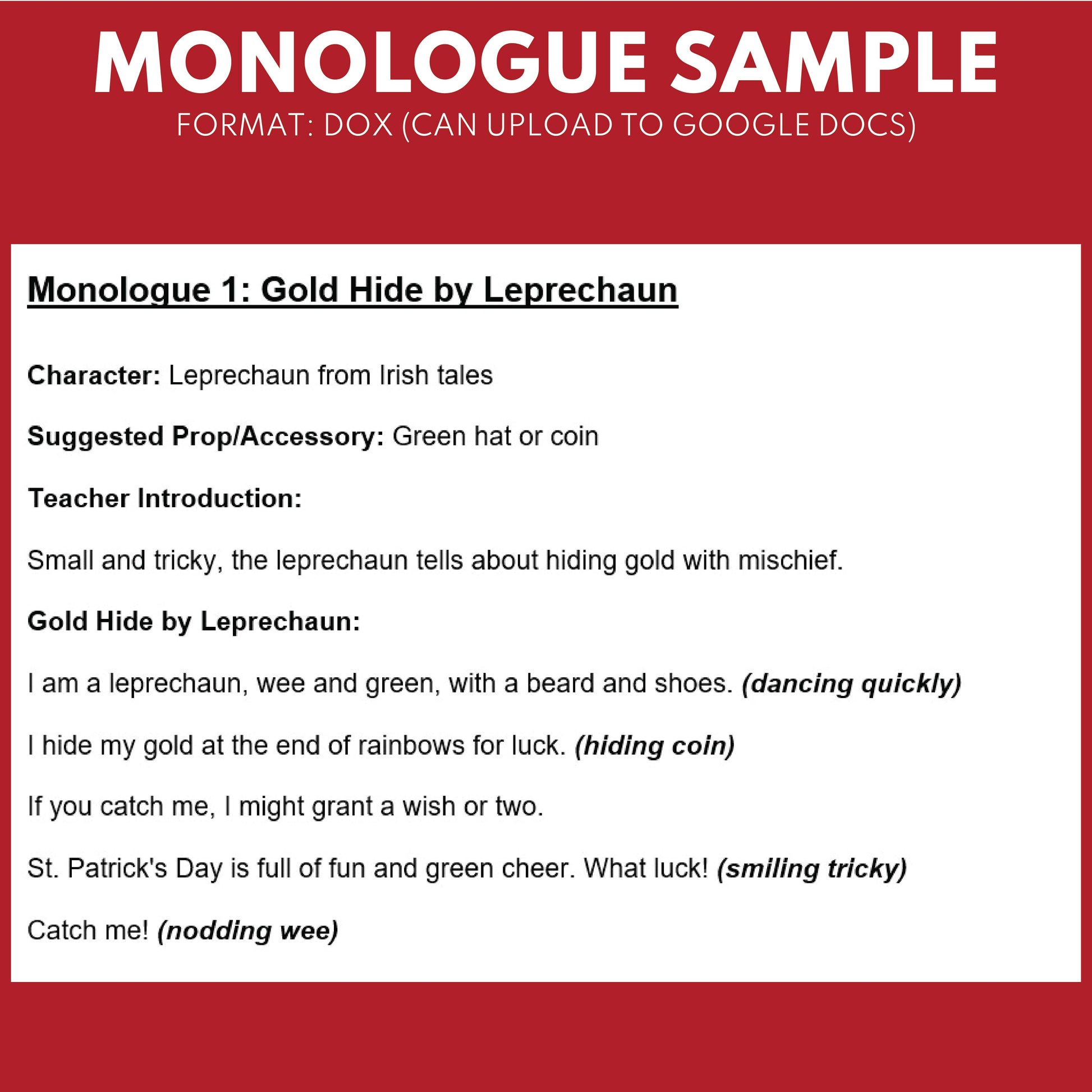 10 St. Patrick's Day Monologues | 10 Short Scripts For Grades 1 to 3 | No Prep Activity PDF