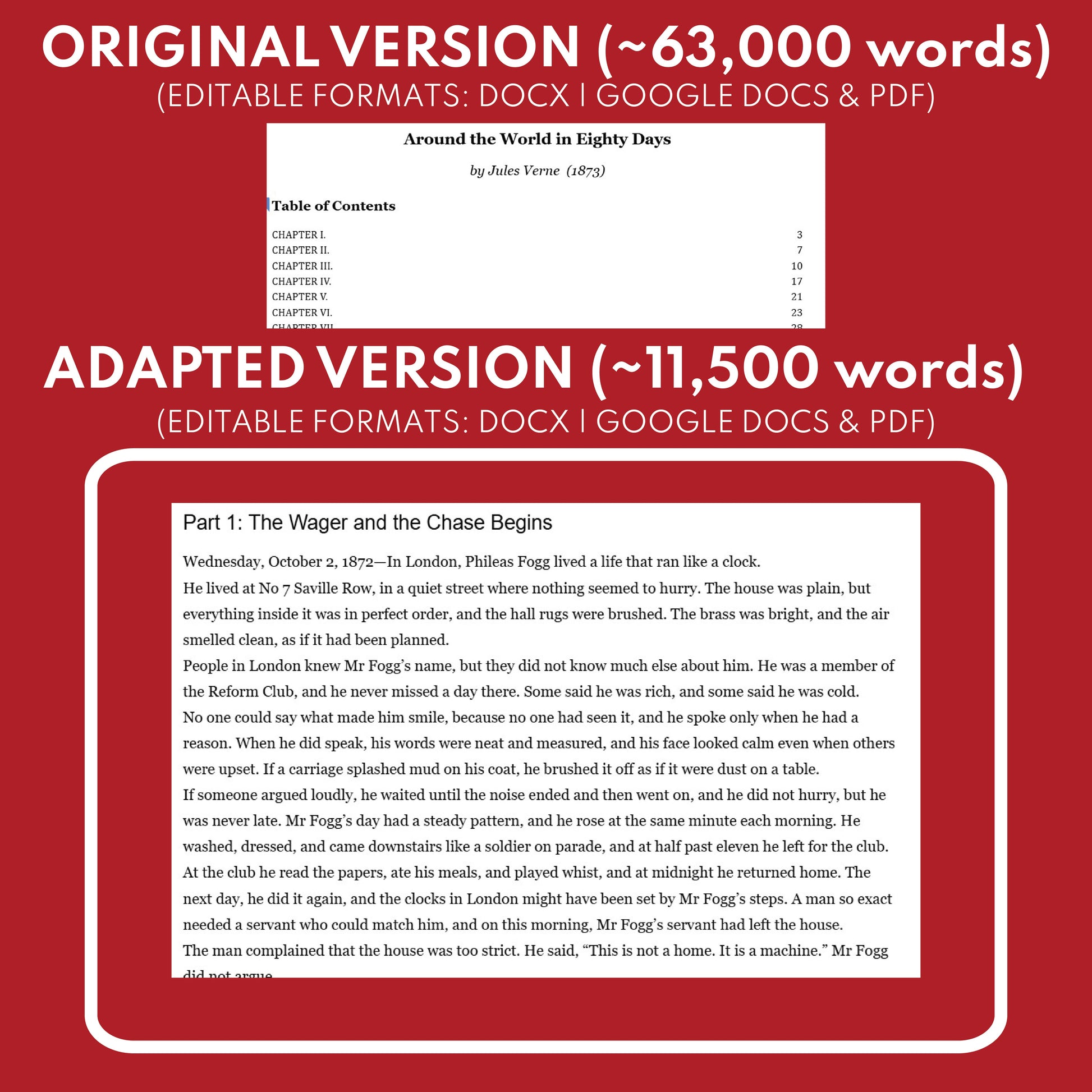SOLUTION: This differentiated novel study for Around the World in 80 Days solves that problem by giving you both the complete original text and a condensed, five-part adapted version, so your class can move together while students read at the level that fits. The adaptation keeps the major plot events, character choices, and core themes so your discussions stay meaningful and text-based.
