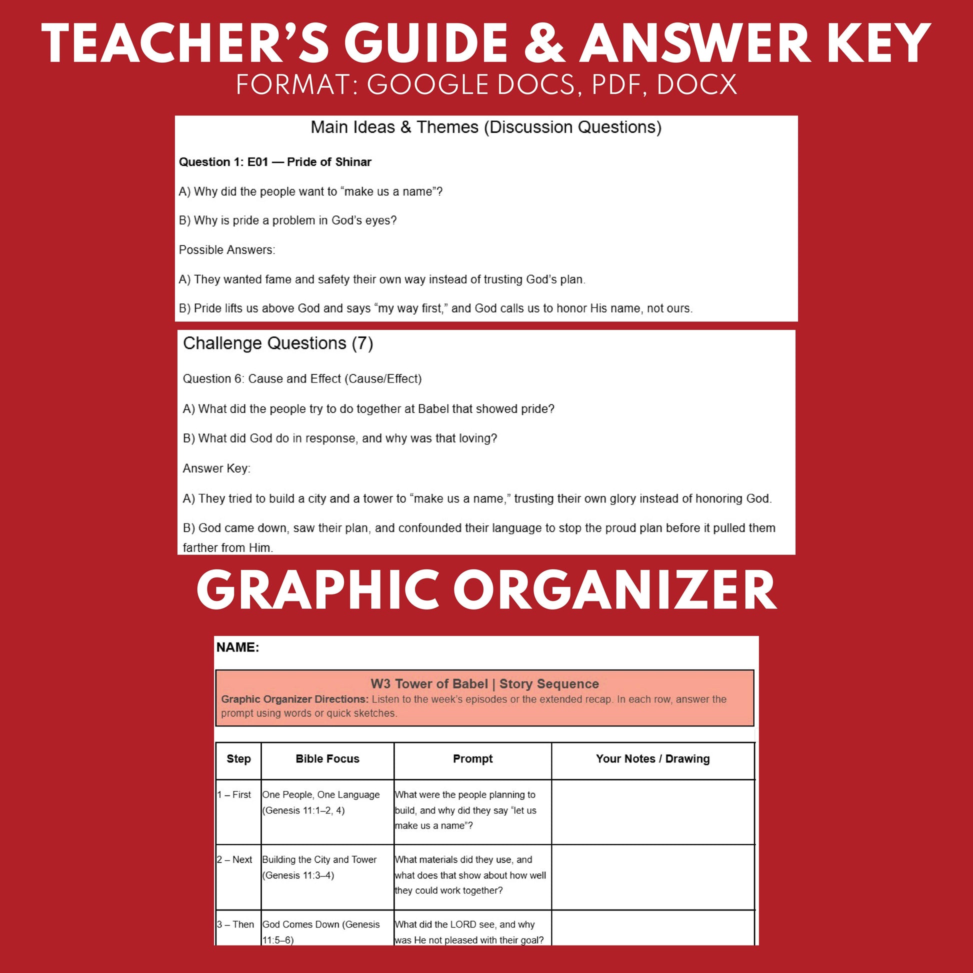 - Easy to Use – Audio, teacher prompts, short-answer & challenge questions, vocabulary, memory verse, graphic organizer, and MC exit quiz.