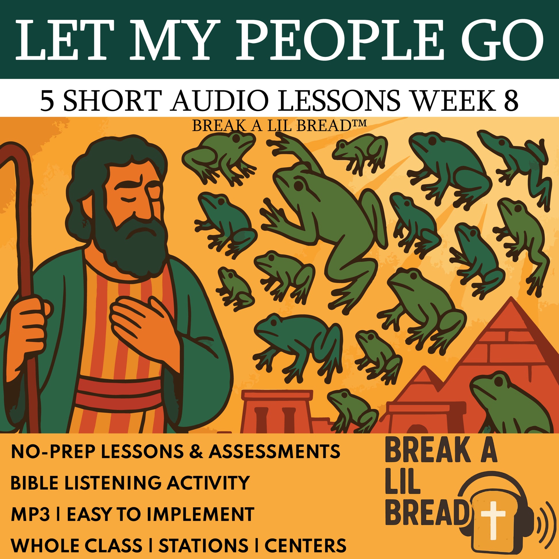 If you’re looking for short Bible audio for elementary that truly fits real schedules, Break A Lil Bread — Week 8: Let My People Go gives you 5-minute Bible lesson audio designed for morning meeting Bible story time, transition activity audio (elementary), and listening station Bible stories. This week’s set walks through God’s power in the plagues, His protection on Passover night, His rescue at the Red Sea, the people’s freedom, and their song of praise. Students learn that God is the true Lord, protects those who trust Him, makes a way when there seems to be no way, and deserves our thanks. With KJV memory verses, kid-level vocabulary, and built-in application prompts, it’s classroom-ready, offline-friendly, and differentiated for whole-group, centers, or early finishers—press play and teach.