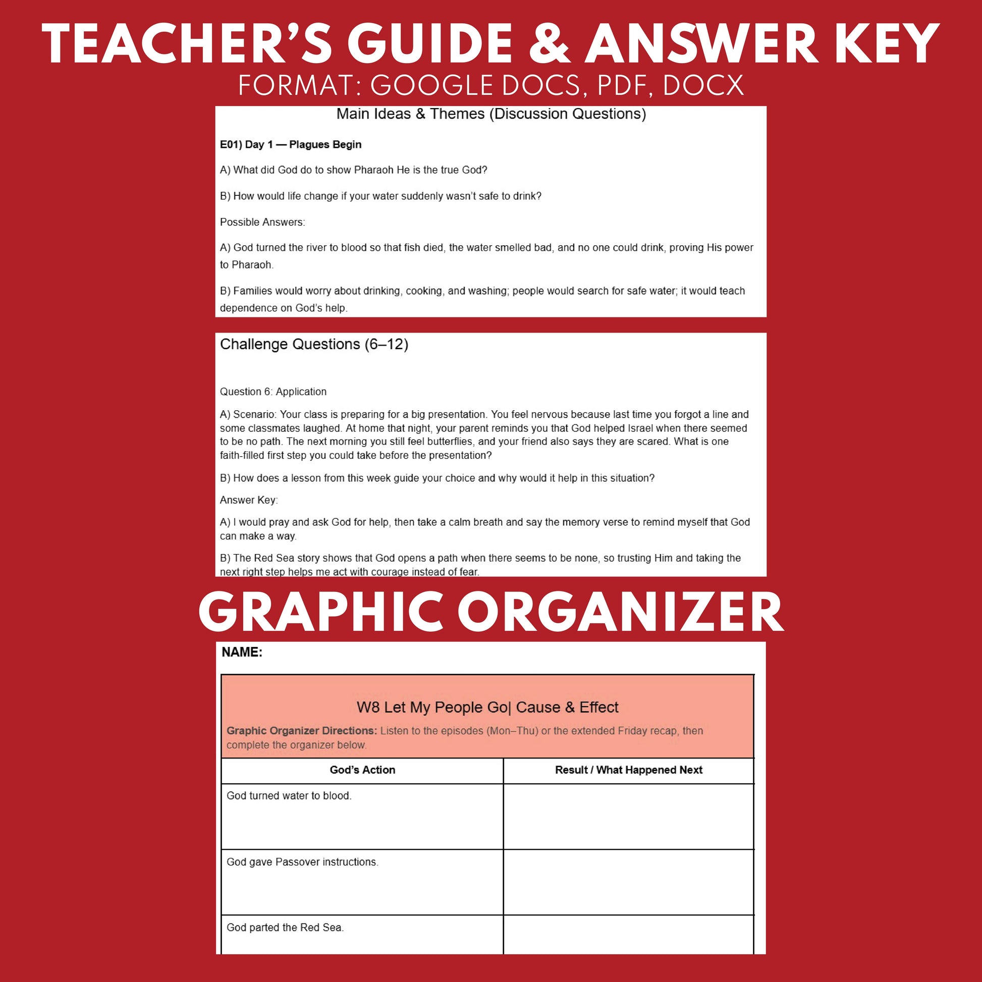 - Easy to Use – Audio, teacher prompts, short-answer & challenge questions, vocabulary, memory verse, graphic organizer, and MC exit quiz.