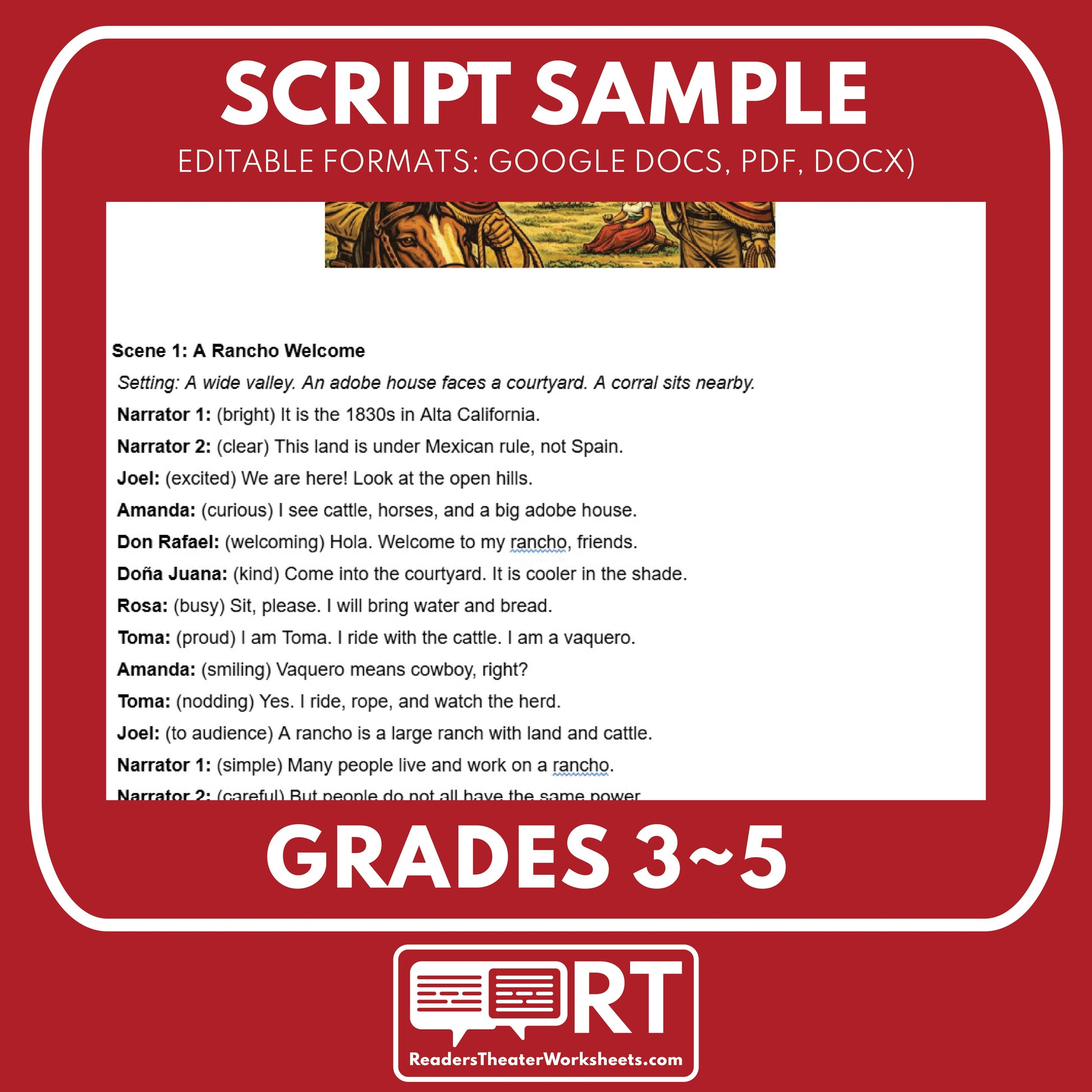 California State History | Rancho Life Under Mexican Rule Readers Theater Script | Grades 3-5
