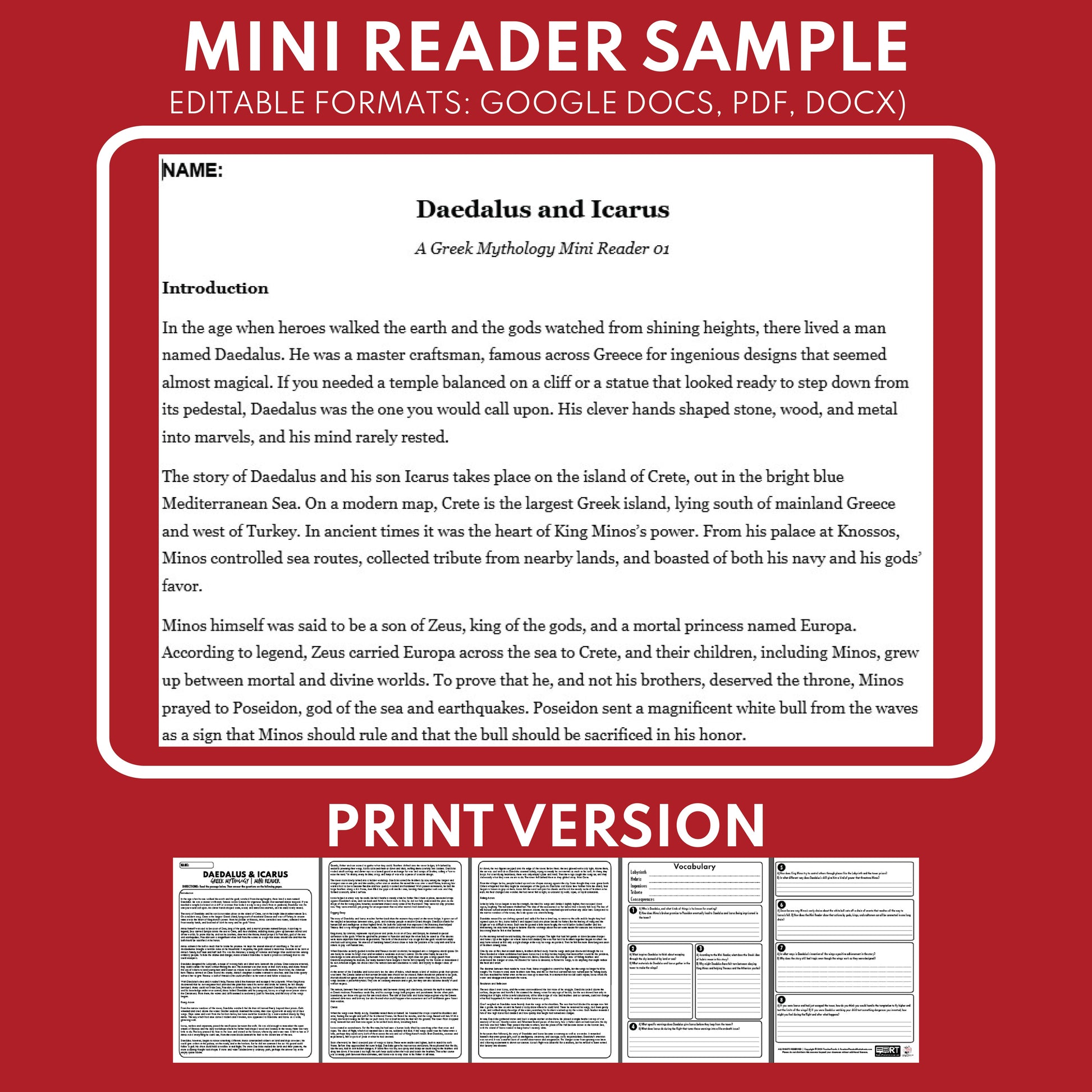 Free Daedalus and Icarus — Greek Mythology Mini Reader #01 | Grades 6–12