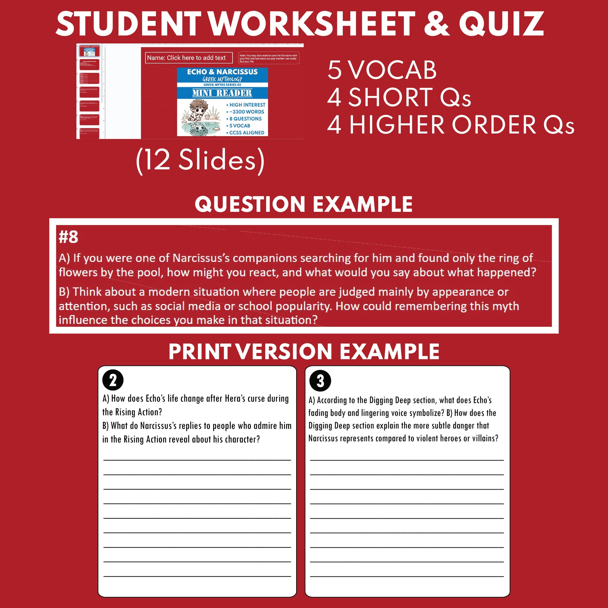 Echo and Narcissus — Greek Mythology Mini Reader #03 | Grades 6–12