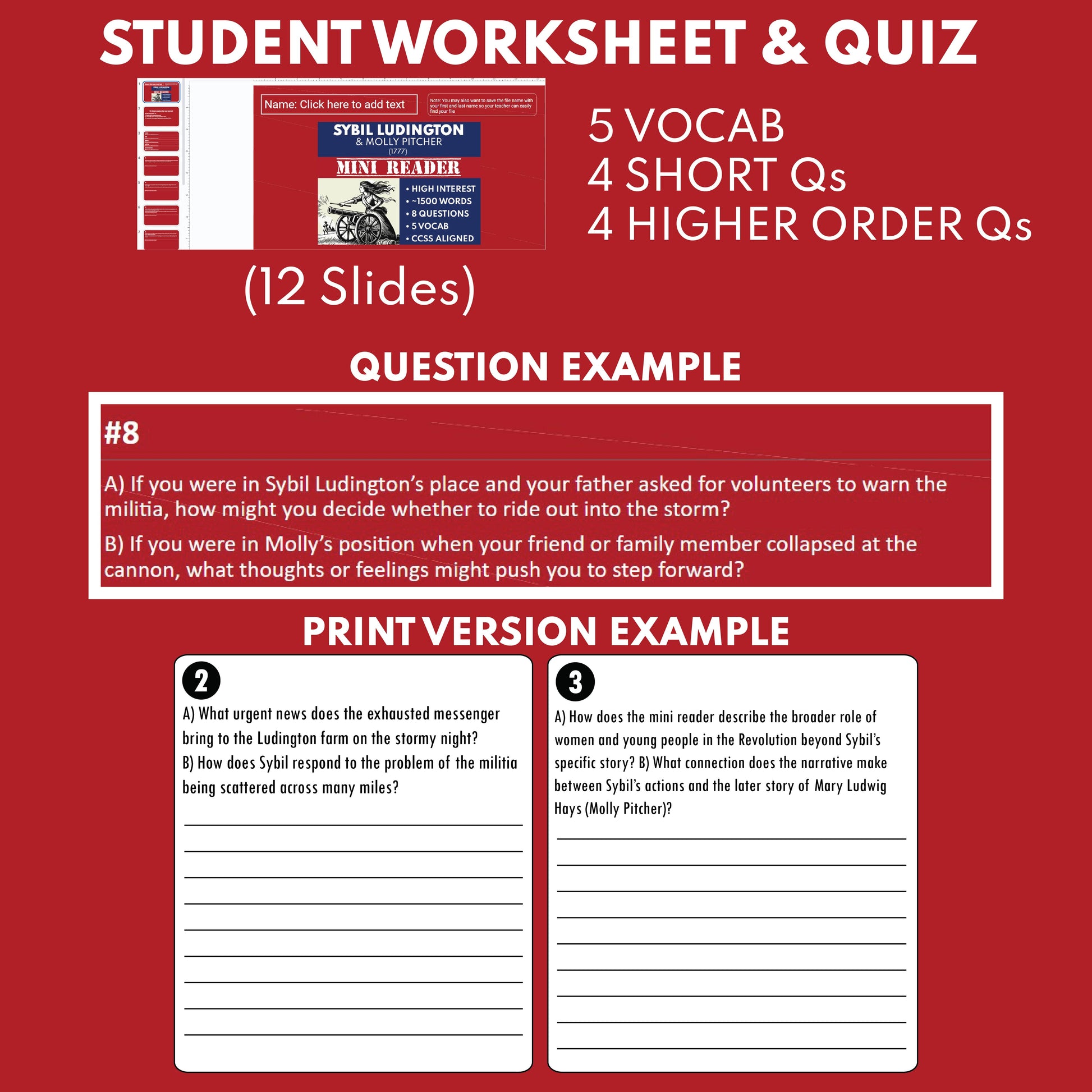 Sybil Ludington and Molly Pitcher | Women in U.S. History Mini Reader Lesson for Grade 5-8