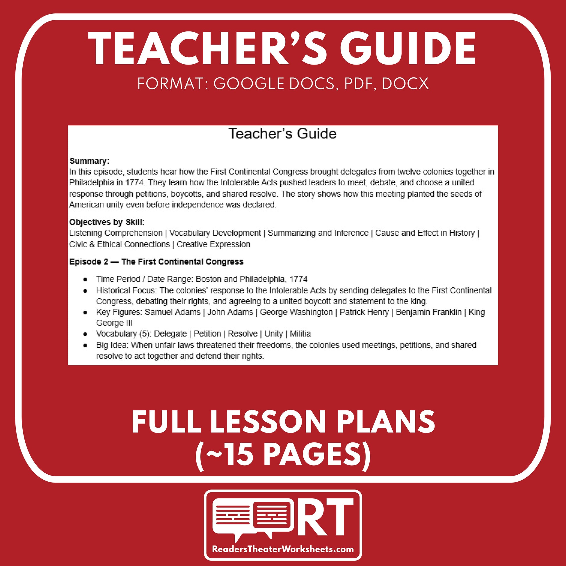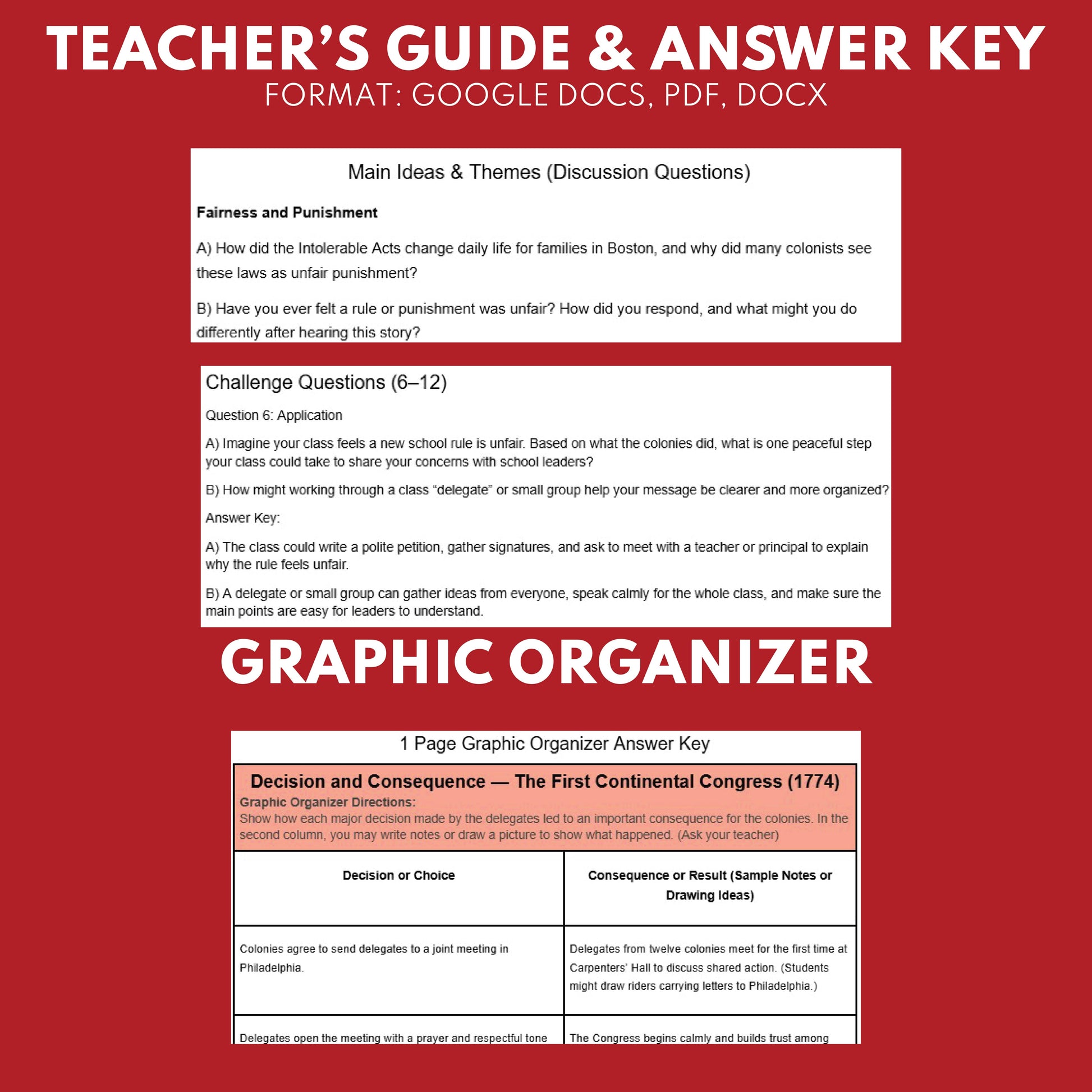 Bring the First Continental Congress to life with a short, teacher-ready audio story and flexible worksheet set. Students hear delegates gather in Philadelphia, debate British laws, and plan boycotts and petitions together.