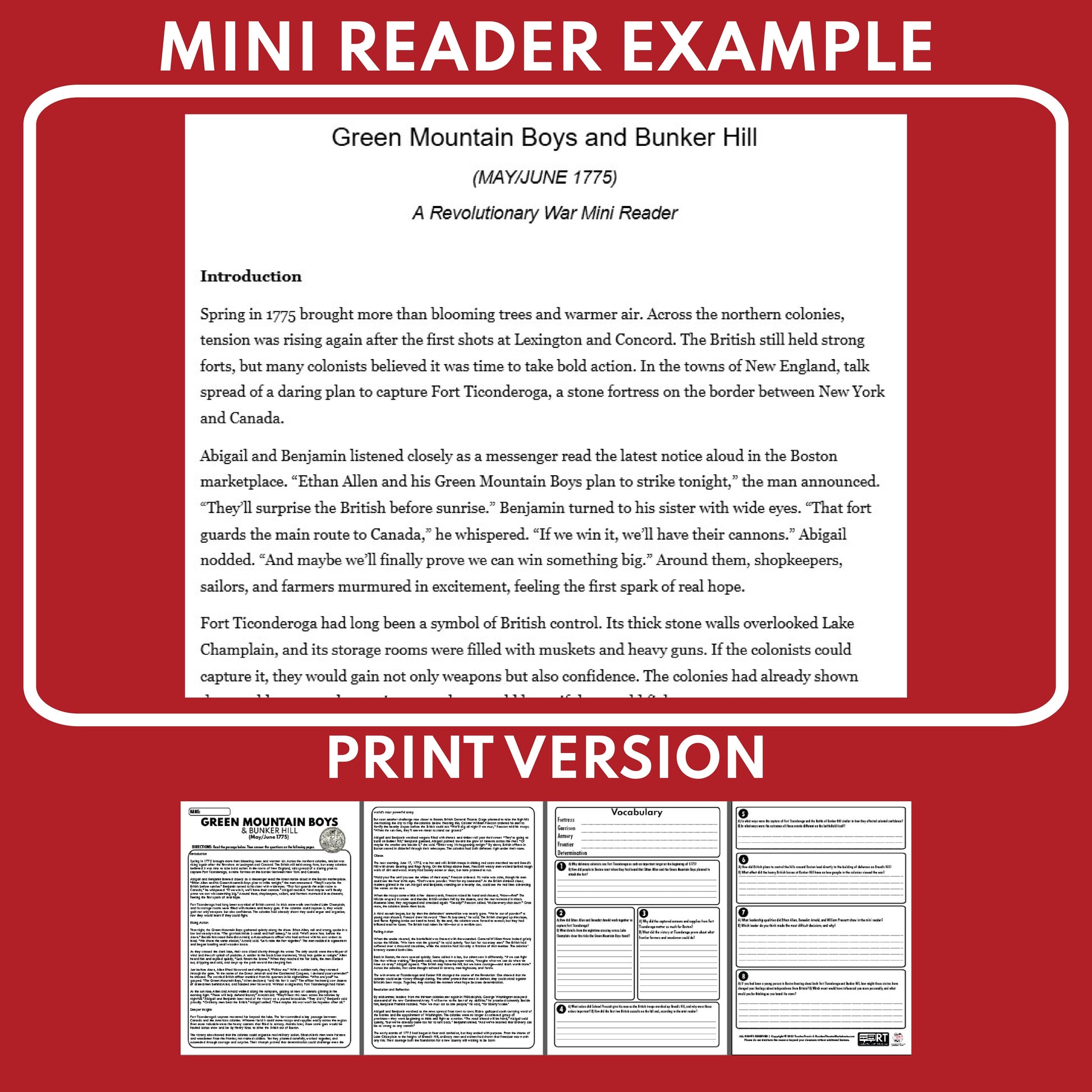 The Green Mountain Boys and Bunker Hill U.S. History Mini Reader Lesson for Grades 5-8