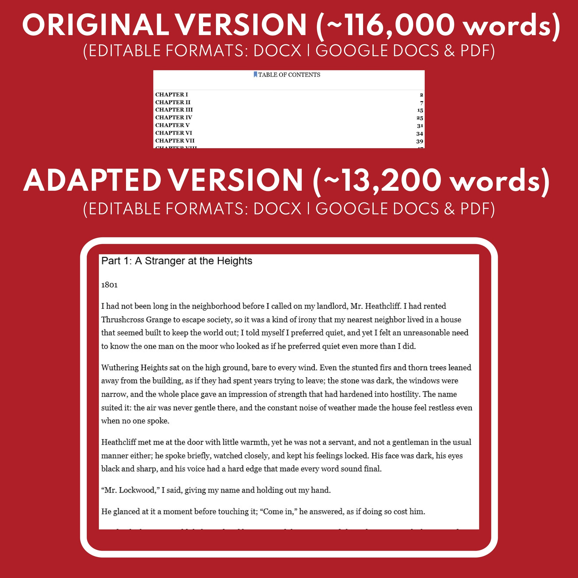 Here’s the solution: This differentiated Wuthering Heights by Brontë novel study / digital lit-set solves that problem by giving you two complete reading tracks that stay perfectly aligned: the full original text of Wuthering Heights plus a streamlined, five-part adapted version that preserves the core plot, relationships, and moral complexity.